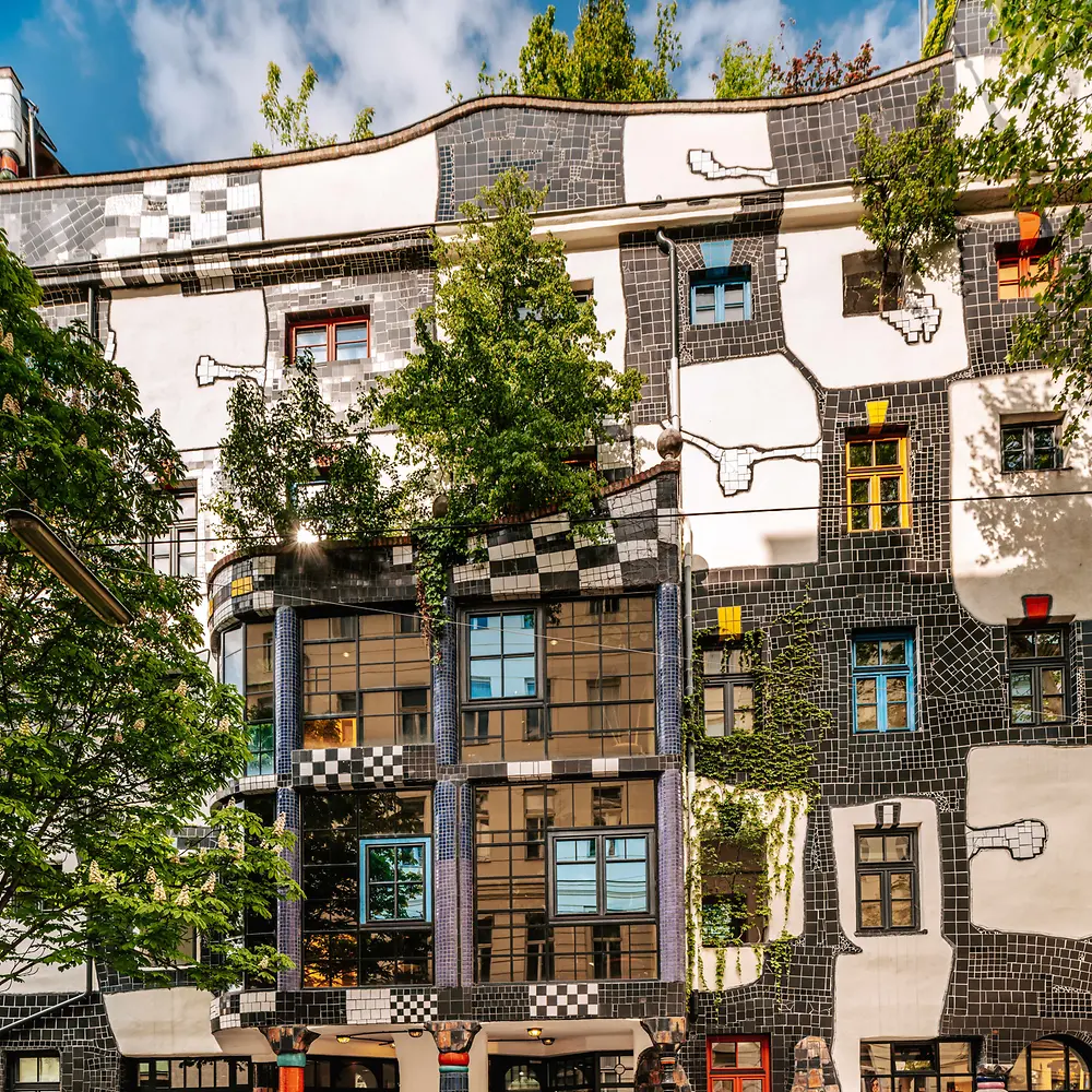 Vjena është plot art, dhe një nga vendet më interesante është Hundertwasserhaus – një ndërtesë me ngjyra, forma të çuditshme dhe zero vijë të drejtë!
